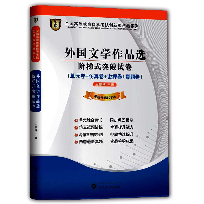 本书是与全国高等教育自学考试指导委员会颁布的《外国文学作品选自学考试大纲》、全国高等教育自学考试指导委员会组编的教材《外国文学作品选》(2013年版)相配套的辅导用书。本书分为四个部分:第一部分是单元综合测试。此部分按照指定教材的编写顺序,分章节提供了四套测试题。考生可用该部分习题检测阶段性复习效果,加深对知识的理解和记忆,及时找出复习备考当中的不足。第二部分是仿真试题演练。考生在对教材知识进行了系统的复习之后,可通过此部分试题全面检测自己的复习效果,并通过此部分试题把握《外国文学作品选》的重点和难点,通过大量的练习,也可以熟能生巧,提高做题的速度和准确度,保证在考试的过程中能够顺利完成所有试题。第三部分是考前密押试卷。本部分试题是在总结了大量的相关试题和历年自考真题的基础上编写的,对本科目考试的常考点、知识重点和难点进行了重点梳理。考生可在临考前用此部分试题进行模拟训练,查漏补缺,作为最后冲刺的参考资料。第四部分是《外国文学作品选》近两次自学考试的真题及其解析。真题的重要性是其他资料都不可代替的,对真题的解读不但有利于考生把握考试重点,更能对所学知识加深印象。
