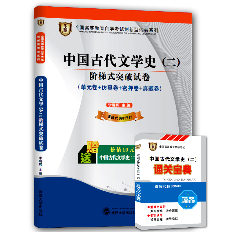 本试卷根据全国高等教育自学考试指导委员会颁布的汉语言文学专业(本科段)《中国古代文学史(二)自学考试大纲》,依照全国高等教育自学考试指导委员会组编的最新教材,参照最新考试题型编写而成,全面覆盖了考试大纲所要求掌握的知识点及能力要求,且重点突出,从内容和形式上都保证了试卷的专业性、权威性和准确性。建议考生将本试卷与相应教材配套使用,通过系统性的练习,加深对该学科考试内容的理解和记忆,掌握常用解题技巧和方法,全面巩固知识点。